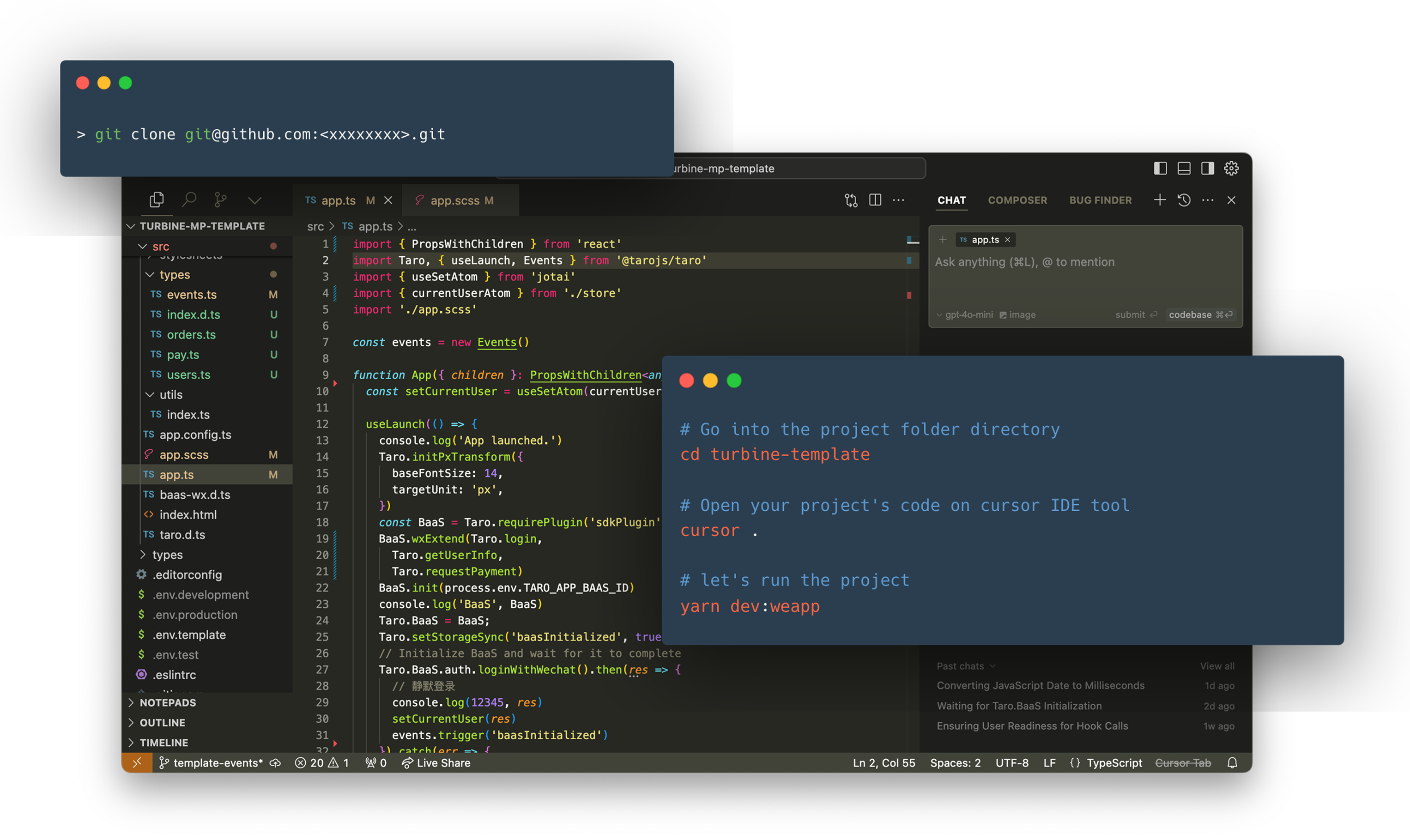Turbine uses TaroJS, a powerful cross-platform framework that supports both React JS and Vue development. We chose to leverage React for its widespread adoption and robust ecosystem. Using TypeScript/JavaScript, we can write modern React components that compile to multiple platforms. While primarily targeting WeChat Mini Programs, the same codebase can be compiled to other platforms like Alipay Mini Programs, H5 web apps, or even native mobile apps if needed in the future. This cross-platform capability, combined with full access to WeChat's native APIs, ensures your Mini Program is optimized for WeChat while remaining flexible for future expansion.